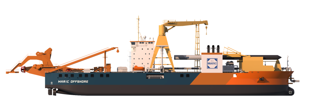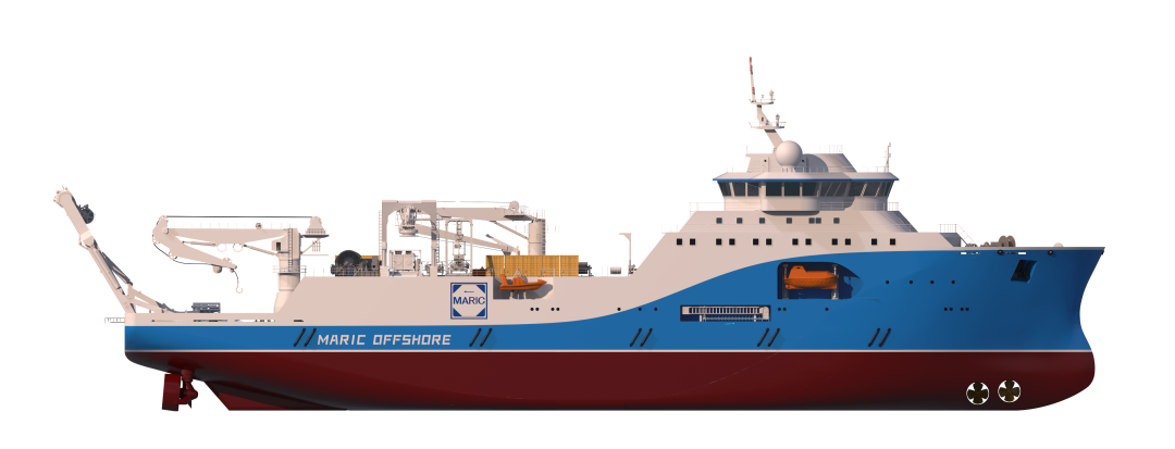 MARIC-CLV 22000海纜施工船采用雙轉盤設計,最大載纜量達22000噸,最大作業水深可達3000米,滿足五級海況下的高效布纜作業。