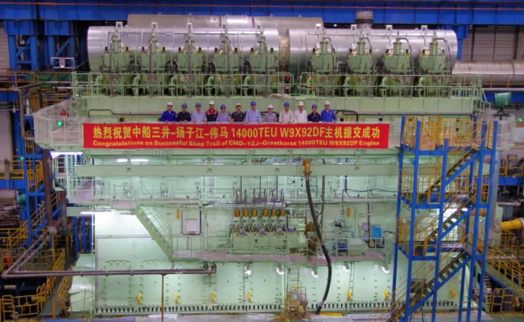 CMD-WinGD 9X92DF雙燃料主機最大功率42560kW,由中船動力集團下屬溫特圖爾發動機有限公司研發,上海中船三井造船柴油機有限公司生產制造,將安裝在14000TEU集裝箱船上。