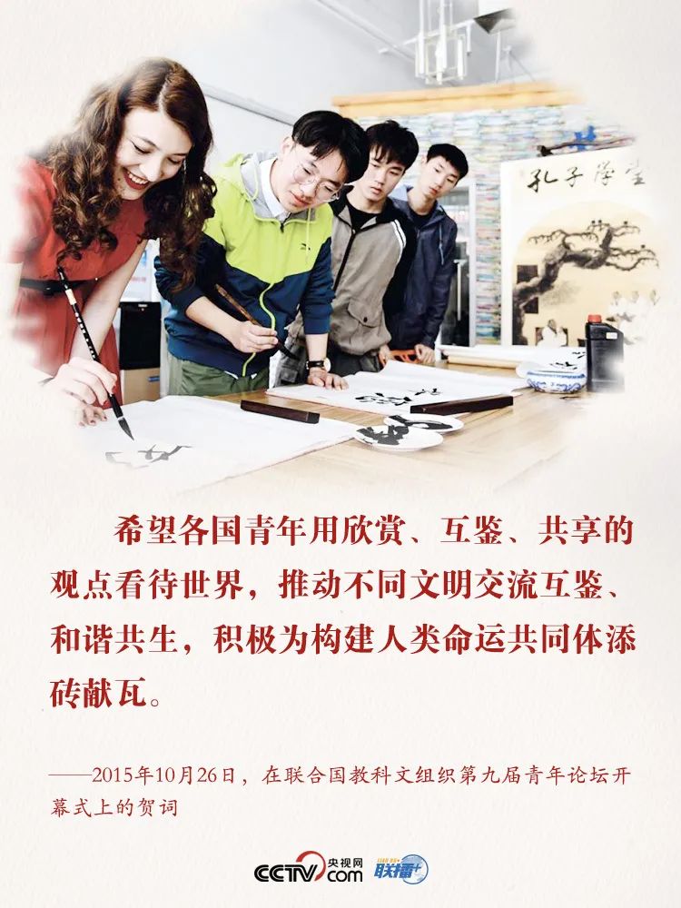 8月12日,是一年一度的國際青年日。 世界的未來屬于年輕一代。習近平主席曾說:“全球青年有理想、有擔當,人類就有希望,推進人類和平與發(fā)展的崇高事業(yè)就有源源不斷的強大力量。”今天的人類命運共同體,比以往任何時候都呼喚青年肩負起重任。 在外交場合發(fā)言、給留學生們回信、向青年論壇致賀信……近年來,習近平主席多次真誠邀請世界各國青年攜手推動構(gòu)建人類命運共同體。