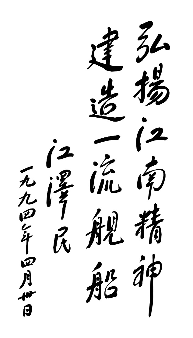 1994年4月30日,江澤民同志為江南造船題詞“弘揚江南精神,建造一流艦船”。