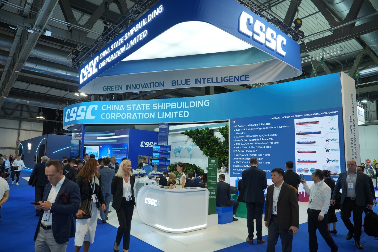 此次展會,中船集團緊密圍繞“清潔能源、綠色發(fā)展”參展主題,科學(xué)高效利用展臺展示空間,設(shè)置集團總體區(qū)、海上LNG產(chǎn)業(yè)鏈裝備區(qū)、綠色能源開發(fā)儲運裝備區(qū)、零碳低碳技術(shù)區(qū)、全球營銷服務(wù)網(wǎng)絡(luò)區(qū),系列化、場景化展示中船集團高水平海上LNG產(chǎn)業(yè)鏈以及綠色清潔能源領(lǐng)域創(chuàng)新技術(shù)產(chǎn)品和標(biāo)志性成果,包括“夢想”號大洋鉆探船、27.1萬立方米超大型液化天然氣運輸船、9.9萬立方米超大型乙烷乙烯運輸船、7500立方米液態(tài)二氧化碳運輸船、集裝箱式電解水制氫設(shè)備等,充分彰顯中船集團產(chǎn)業(yè)鏈綜合競爭優(yōu)勢和綠色低碳創(chuàng)新能力,高效助力重點客戶關(guān)系鞏固及海外市場開發(fā),突出體現(xiàn)推動綠色轉(zhuǎn)型發(fā)展的企業(yè)社會責(zé)任擔(dān)當(dāng)。