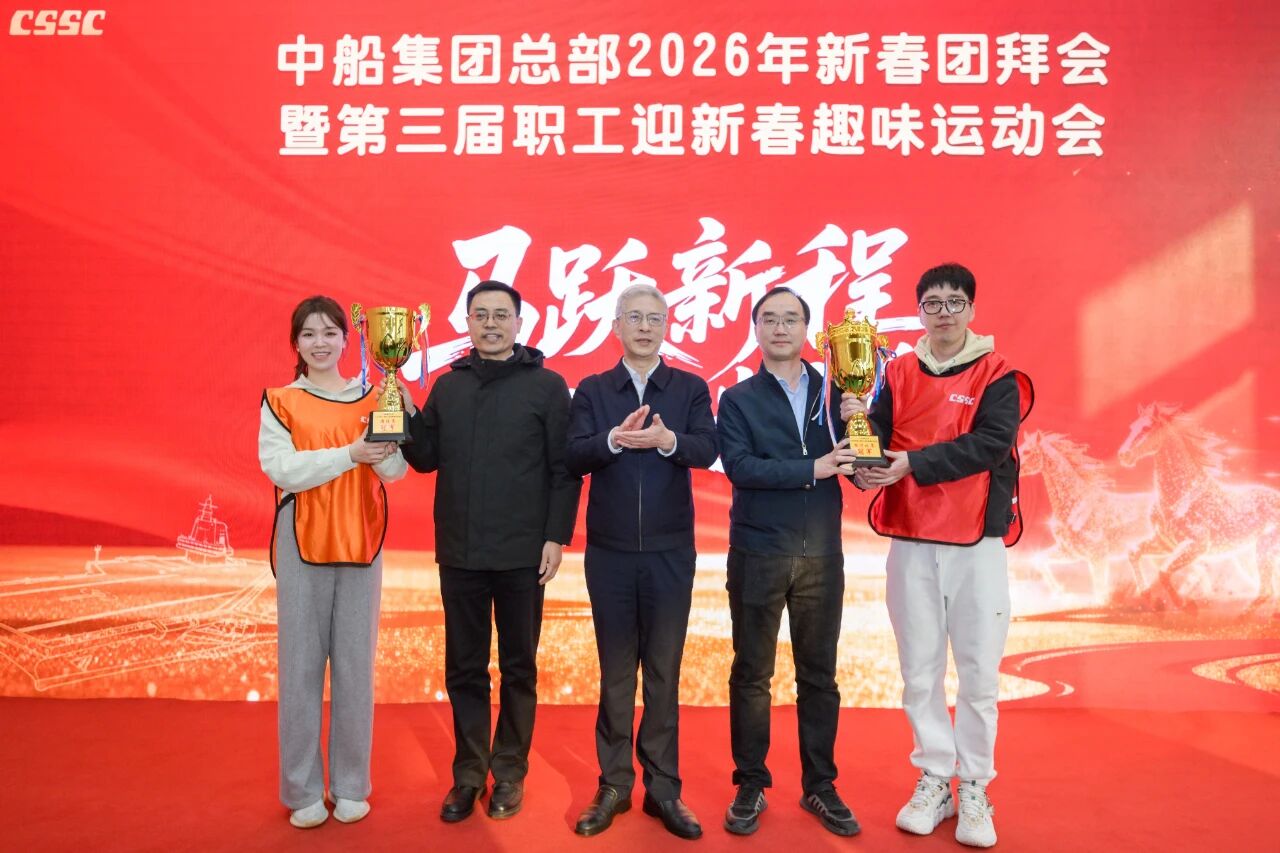 團拜會現場,集團公司領導為運動會獲獎隊伍代表頒獎。集團總部各部門和二級管理單位通過視頻集體“云拜年”,感受屬于中船人的龍馬精神與團圓暖意,充分展現了中船人在“十五五”開局之年,一馬當先開新局、矢志奮進建新功的昂揚風貌,凝聚起高質量建設世界一流船舶集團的磅礴力量。
