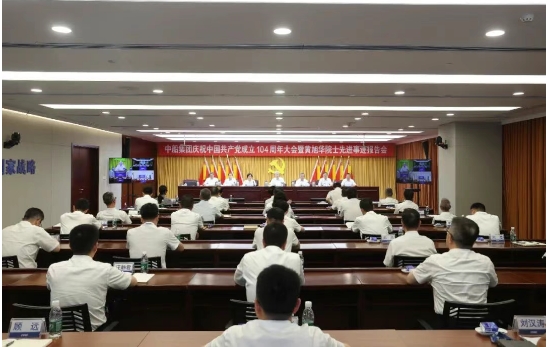 7月1日,中國船舶集團有限公司召開慶祝中國共產黨成立104周年大會暨黃旭華院士先進事跡報告會。中央第七指導組成員、國務院國資委黨建局相關同志出席會議。中船集團黨組書記、董事長徐鵬出席會議并講話,帶領與會人員重溫入黨誓詞,并為老黨員代表頒發“光榮在黨50年”紀念章。黨組副書記、董事、總經理王國強主持會議。黨組副書記、董事賈海英宣讀了《關于在全集團深入開展黃旭華院士先進事跡“四學四做”活動的倡議書》。中船集團在滬黨組成員參加會議。
