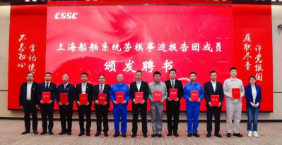 會(huì)上播放了《2020年上海船舶系統(tǒng)勞模、先進(jìn)風(fēng)采錄》視頻,為12位勞模事跡巡講團(tuán)成員頒發(fā)了聘書(shū)。按照計(jì)劃,勞模事跡巡講團(tuán)將赴上海船舶系統(tǒng)的企事業(yè)單位進(jìn)行宣講。