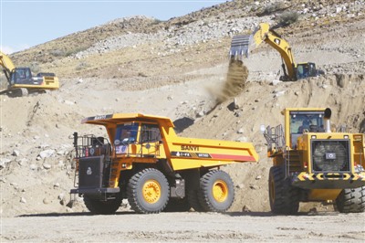 圣克魯斯河邊,一臺(tái)臺(tái)中國(guó)制造的重型機(jī)械已經(jīng)開(kāi)始破土作業(yè)。(張衛(wèi)中 攝)