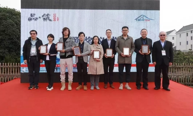 “稻田驛站”設(shè)計主創(chuàng)謝高皓(右三)參加一等獎頒獎儀式