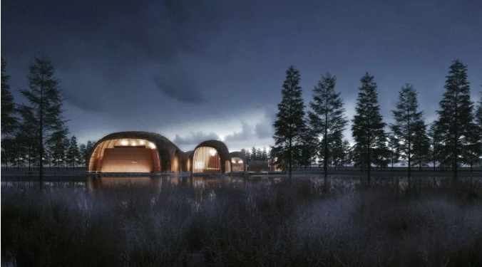 ????“稻田驛站”方案以崇明早期民居“環(huán)洞舍”為原型,設(shè)計定位區(qū)別于村落改造,設(shè)計立足稻田之間,追求野趣、樸拙的田園氣息,回歸原始建造,力求在鄉(xiāng)村振興的大背景下,喚醒人們對田野間的原始記憶。