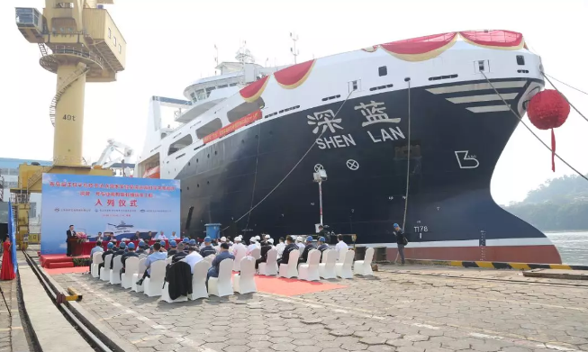 ????11月24日,青島海洋科學與技術(shù)試點國家海洋實驗室(以下簡稱“海洋試點國家實驗室”)在黃埔文沖船舶有限公司舉行了我國首艘漁業(yè)捕撈加工一體船“深藍號”入列國家海洋實驗室遠海科學考察船隊儀式。