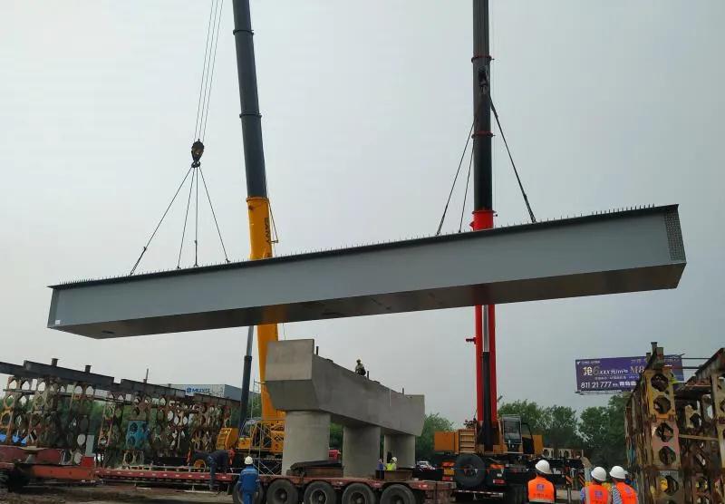 ????武船集團(tuán)軌道交通公司與青島巨源市政工程有限公司簽訂的新機(jī)場(chǎng)高速(天康路以東段)橋鋼箱梁承包項(xiàng)目,總重約2500噸,計(jì)劃10月底完成安裝。