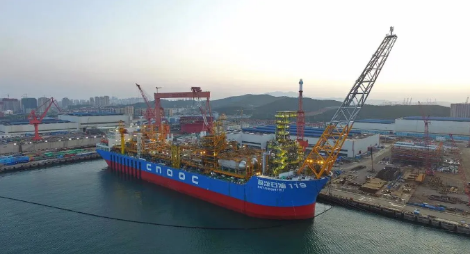 ????5月15日,中國船舶集團七〇八所為中國海洋石油集團有限公司設計的中國作業水深最大的FPSO(浮式生產儲卸油裝置)“海洋石油119”號交付啟航,為南海油氣勘探開發再添重器。它的建成標志著我國大型深水FPSO高端制造技術和綜合能力獲得新的突破,形成了從自主研發、設計、建造、安裝、檢驗到生產運營和相關技術服務的完整產業鏈,進一步完善了我國具有自主知識產權的深水油氣開發工程建設技術體系。