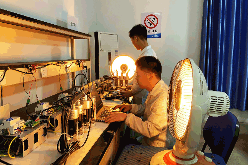 因設(shè)備調(diào)試需要模擬高溫日照環(huán)境,七二二所項(xiàng)目研發(fā)團(tuán)隊(duì)在酷夏使用大功率熱取暖器,室內(nèi)溫度已達(dá)到50℃以上。