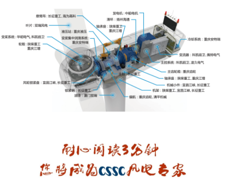 中國船舶集團擁有國內(nèi)實力強勁的自主研發(fā)與生產(chǎn)體系,具備強大的機、電、液、控一體化裝備制造服務保障能力,形成了從葉片、齒輪箱、發(fā)電機、控制系統(tǒng)到機座、機架、塔筒、輪轂等全系列制造能力,從資源開發(fā)、零部件制造、整機研發(fā)、工程安裝、運維服務等全產(chǎn)業(yè)鏈保障能力,是我國唯一具備較完整風電裝備研制生產(chǎn)服務保障體系的專業(yè)化集團。