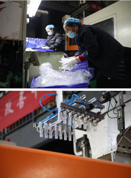 為保障防疫物品供應(yīng),春節(jié)期間,前衛(wèi)公司精密模塑產(chǎn)業(yè)生產(chǎn)車間24小時(shí)不停機(jī)。各機(jī)臺(tái)滿負(fù)荷運(yùn)轉(zhuǎn),每天生產(chǎn)咽拭子棉簽棒1000萬支,一次性保存管70萬支,為全國(guó)核酸檢測(cè)能力的提升提供了強(qiáng)有力的保障。