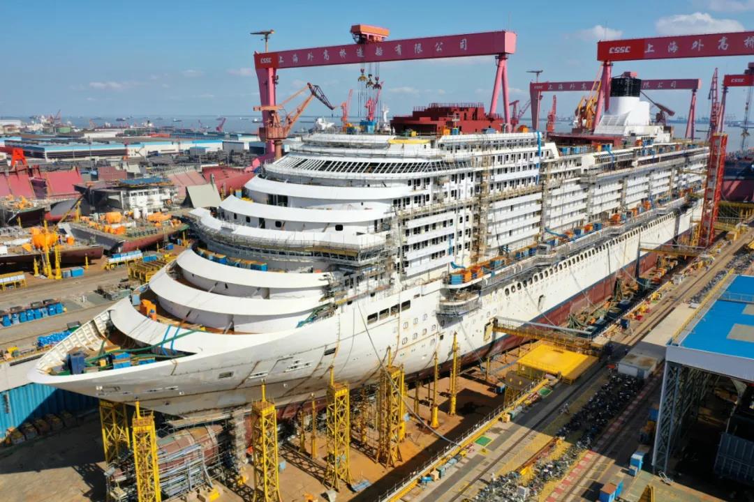 國產(chǎn)首制大型郵輪總段制作暨全船搭載完工,是郵輪建造過程中的重大里程碑節(jié)點,為年底實現(xiàn)整船起浮打下了堅實的基礎(chǔ)。