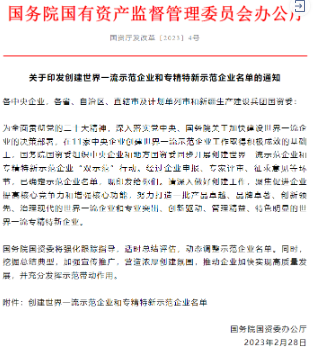 創(chuàng)建世界一流專精特新示范企業(yè)是國務院國資委貫徹黨中央、國務院關于加快建設世界一流企業(yè)決策部署,深化創(chuàng)建示范、管理提升、價值創(chuàng)造、品牌引領“四個專項行動”的重要內(nèi)容,目的在于加快建設一批培育一批“專精特新”“小巨人”和單項冠軍企業(yè),在不同領域形成百家以上不同層級的典型示范企業(yè)。
