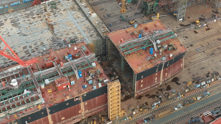 來欣賞“拼積木” ,這就叫環(huán)形總段總組工藝。
