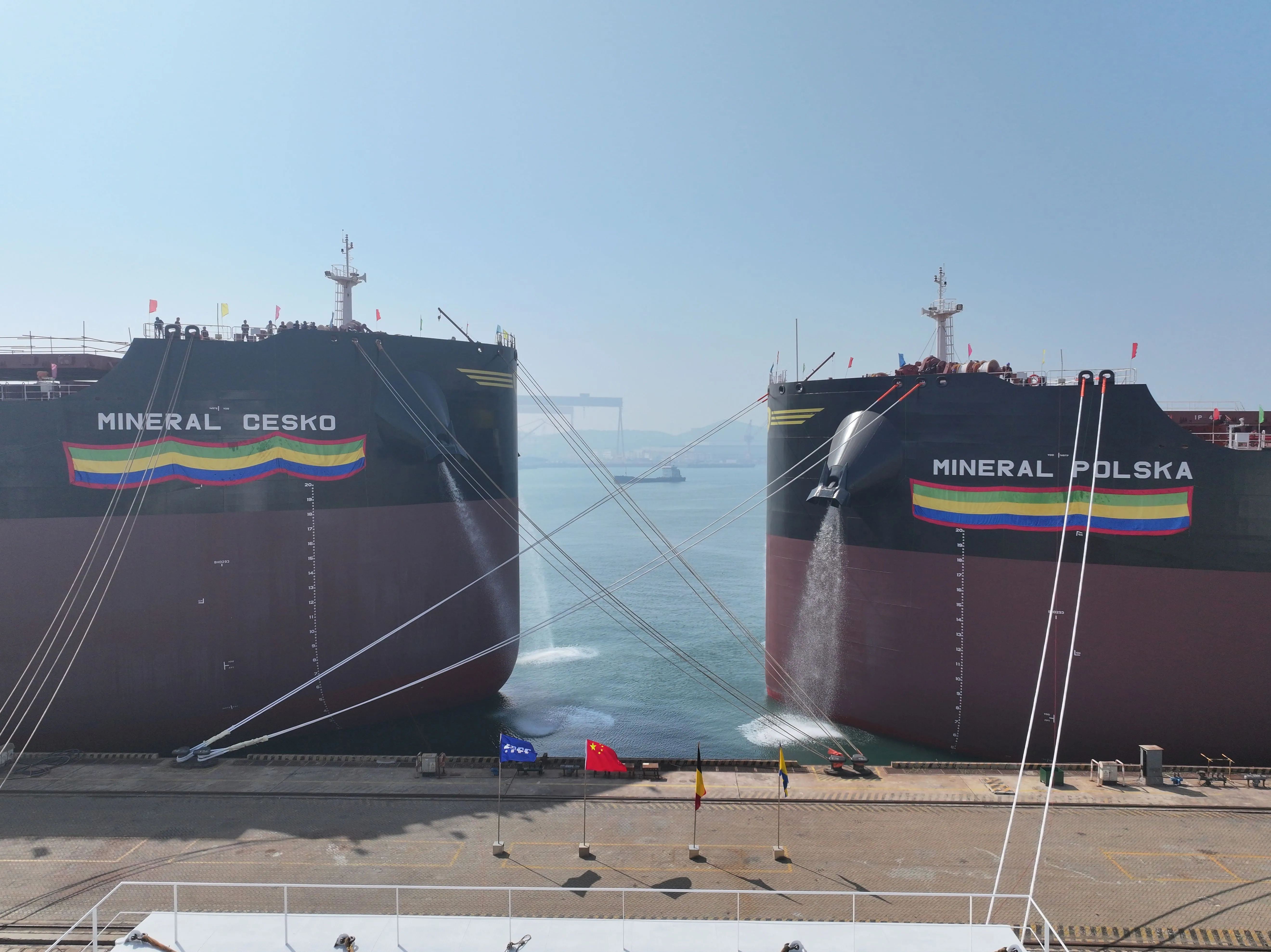 5月20日,北海造船為比利時CMB.TECH公司建造的2艘21萬噸氨燃料預留散貨船“MINERAL?CESKO”號和“MINERAL?POLSKA”號同日命名。
