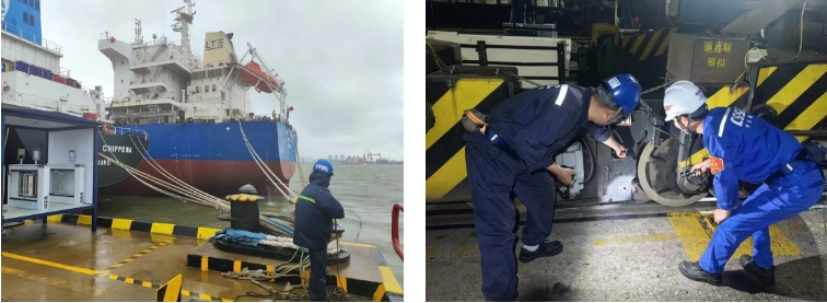 臺風肆虐時,組織管理人員抗臺值守,以“臺風不撤,我們不撤”的原則堅守一線。臺風預警解除后,10小時內完成登船梯搭設及纜繩解除,迅速恢復正常生產。憑借科學預案與堅守,最終實現纜繩零斷裂、船舶零移位,有力保障了生命財產安全。