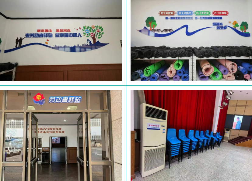 這個約300平方米的會議室共享空間內,可滿足休息、補水、應急等多重需求。空調定時運轉,保持著舒適的溫度;直飲機冷熱水方便打??;窗臺上擺放著急救藥箱,里面備有藿香正氣水、創可貼、速效救心丸等藥品;架子上的躺墊干凈整潔,可供短暫休憩;手機充電電源,解決戶外勞動者“電量焦慮”問題;架子上整齊擺放的愛心傘,為工友提供愛心雨具;設置“叫醒服務”的起床鬧鈴,為大家按時起工提供了更好保障。此外,該公司還在生產現場增設了3個小型驛站,配備小藥箱、血壓計、AED等設備,兼具健康小屋功能,實現重點區域全覆蓋。同時,建立定期巡查維護機制,確保各項設施正常運轉,并根據使用者反饋不斷優化服務內容。