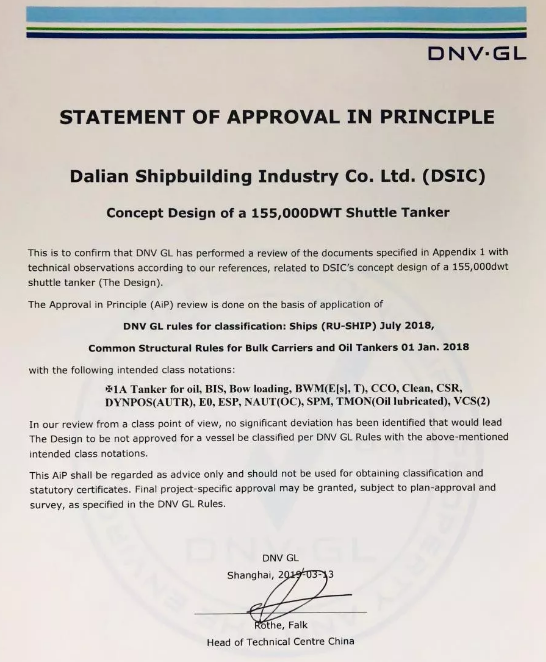????11月20日,大船集團在總部舉行了“15.5萬噸穿梭油船”和“通用型FPSO”設計AIP證書頒發儀式,兩型新產品獲得DNV·GL原則性認可。