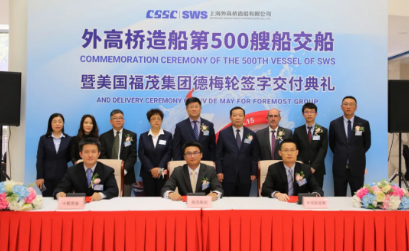 4月15日,由中國船舶集團旗下外高橋造船自主開發(fā)、設(shè)計和建造的21萬噸紐卡斯爾型散貨船“德梅”號交付美國福茂集團。這是外高橋造船自2003年交付第一艘商品船以來,精心出品的第500艘船,完工總量累計8968萬載重噸,年均27.8艘/498.2萬載重噸,位居中國第一,躋身全球前列。