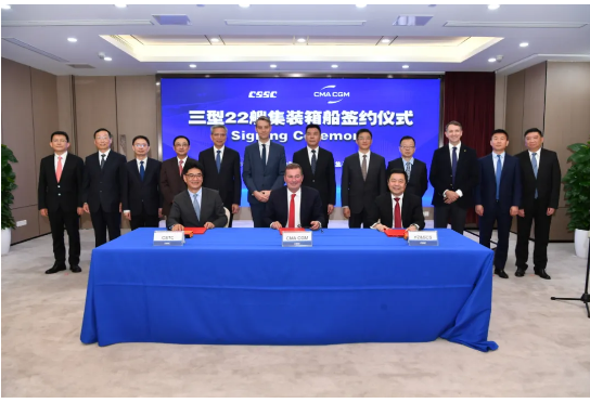 3型22艘綠色集裝箱船簽約,中國船舶集團喜獲歷史最大單筆集裝箱船訂單。