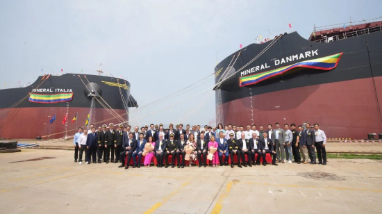 中國船舶集團旗下北海造船為比利時CMB公司建造的21萬噸散貨船32號船、37號船于7月18日命名,21萬噸散貨船33號船、38號船于7月23日出塢。北海造船干部職工鼓足干勁,全力奔赴“夏”半場。