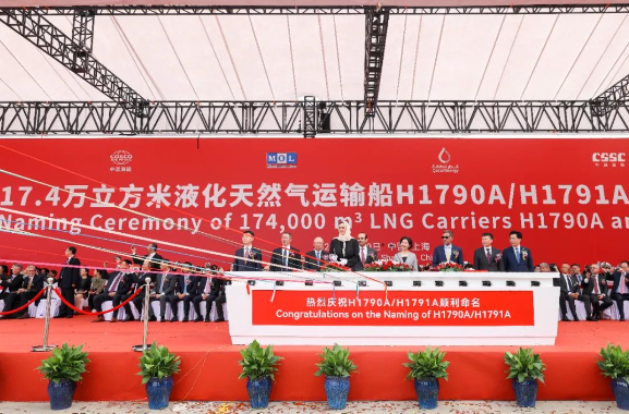 目前,滬東中華承建的“百船計(jì)劃”首批12艘17.4萬(wàn)立方米大型LNG船項(xiàng)目已開(kāi)工9艘,出塢5艘。此次命名的2艘船將分別于9月12日和9月下旬簽字交付離廠。