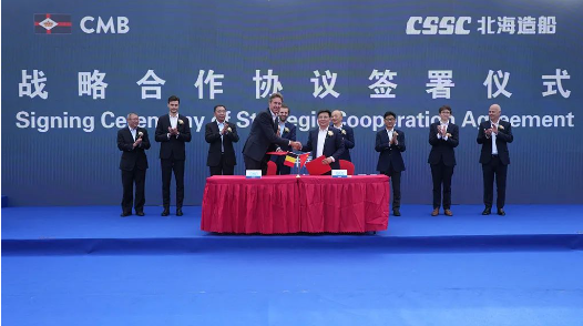 北海造船與比利時CMB.TECH公司簽署戰略合作協議。雙方將秉持優勢互補、互利共贏的態度,持續拓展合作深度與廣度,聚焦市場推出綠色燃料船,共同研發低碳和零排放技術,為打造國際綠色航運新生態作出更大貢獻。