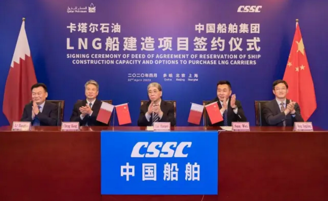 4月22日,中國船舶集團與卡塔爾石油公司簽署“中國船舶—卡塔爾石油液化天然氣(LNG)船建造項目”協議,所涉訂單總金額超過200億元人民幣。