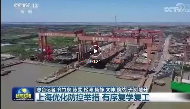新聞聯(lián)播聚焦上海優(yōu)化防控舉措,加快推動復(fù)工復(fù)產(chǎn),點贊中國船舶集團旗下三大船企都實現(xiàn)復(fù)工復(fù)產(chǎn)。 | 來 源:集團公司黨群工作部 | 責(zé) 編:寧湘舒 | 校 對:王 琦 | 審 核:項 麗/甘豐錄