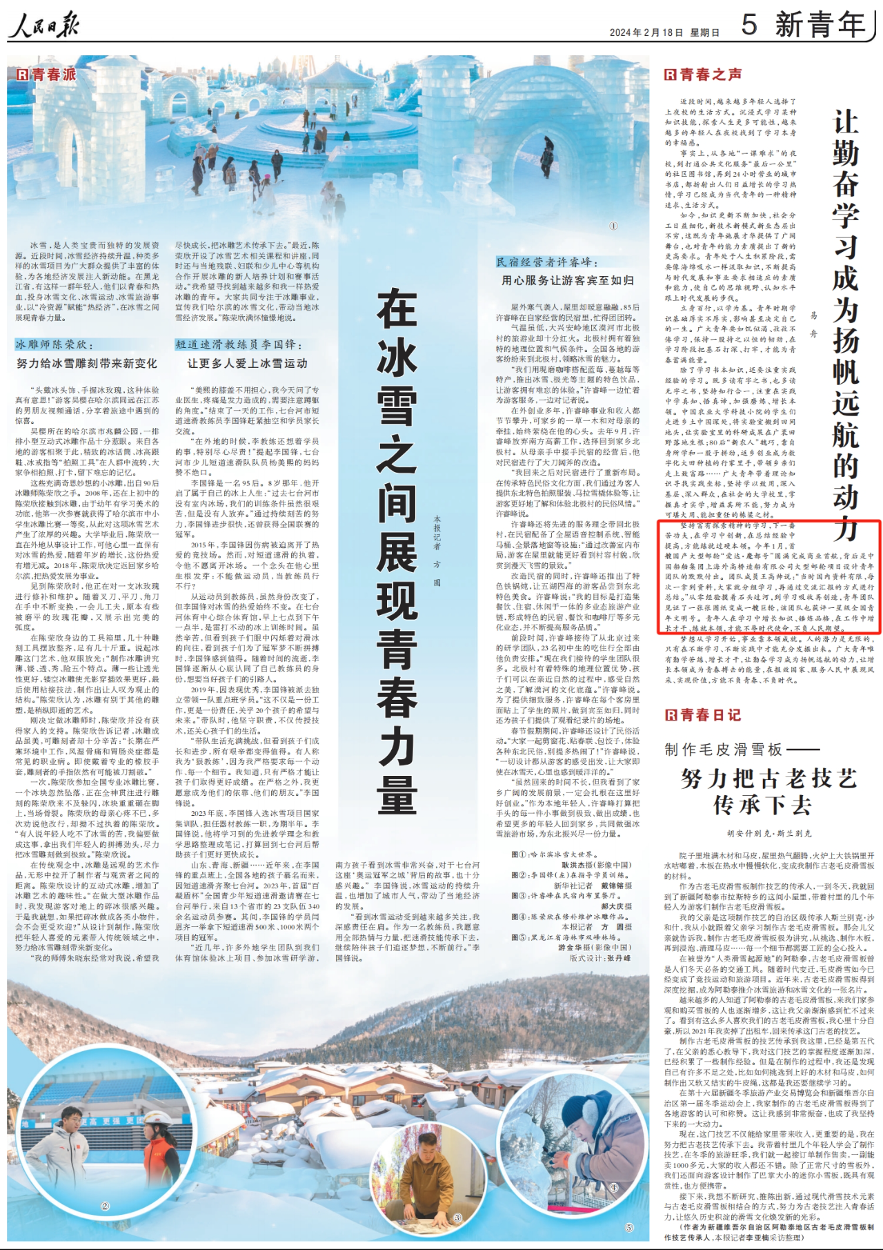 今年1月,首艘國(guó)產(chǎn)大型郵輪“愛(ài)達(dá)·魔都號(hào)”圓滿(mǎn)完成商業(yè)首航,背后是中國(guó)船舶集團(tuán)上海外高橋造船有限公司大型郵輪項(xiàng)目設(shè)計(jì)青年團(tuán)隊(duì)的默默付出。團(tuán)隊(duì)成員王高帥說(shuō):“當(dāng)時(shí)國(guó)內(nèi)資料有限,每次一拿到資料,大家就分組學(xué)習(xí),再通過(guò)交流匯報(bào)的方式進(jìn)行總結(jié)。”從零經(jīng)驗(yàn)摸著石頭過(guò)河,到學(xué)習(xí)吸收再創(chuàng)造,青年團(tuán)隊(duì)見(jiàn)證了一張張圖紙變成一艘巨輪,該團(tuán)隊(duì)也獲評(píng)一星級(jí)全國(guó)青年文明號(hào)。青年人在學(xué)習(xí)中增長(zhǎng)知識(shí)、錘煉品格,在工作中增長(zhǎng)才干、練就本領(lǐng),才能不辱時(shí)代使命,不負(fù)人民期望。