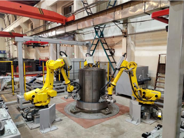 近日,中國船舶集團(tuán)旗下杰瑞自動化承研的定子鐵芯疊裝機(jī)器人工作站項目通過驗收并投入使用,實現(xiàn)了大型高壓異步電機(jī)關(guān)鍵配套——定子鐵芯的自動化生產(chǎn)。