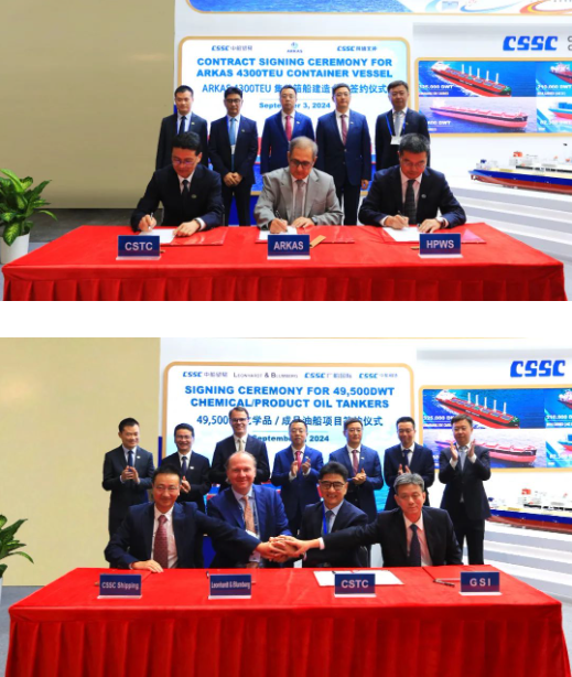 此次展會(huì)上,集團(tuán)公司有關(guān)成員單位負(fù)責(zé)人率隊(duì)赴展會(huì)開展重點(diǎn)船海項(xiàng)目經(jīng)營洽談并拜訪當(dāng)?shù)睾椭苓厙抑饕蛻簟<瘓F(tuán)公司以“高端綠色、領(lǐng)跑未來”為參展主題,展臺(tái)設(shè)置了集團(tuán)總體區(qū)、高端綠色船舶區(qū)、先進(jìn)動(dòng)力配套區(qū)共3個(gè)展示區(qū)域,重點(diǎn)展示了首艘國產(chǎn)大型郵輪、27.1萬立方米超大型LNG(液化天然氣)運(yùn)輸船、10800車LNG雙燃料汽車運(yùn)輸船、全球首艘LNG雙燃料VLCC(超大型油船)、21萬噸氨燃料散貨船、9.3萬立方米超大型全冷式液化氣船等一系列技術(shù)含量高、全球競(jìng)爭(zhēng)力強(qiáng)的高端綠色船型,以及CPGC-WinGD 10X92DF-M甲醇雙燃料發(fā)動(dòng)機(jī)、船用供氣系統(tǒng)、船用碳捕捉系統(tǒng)、船舶新能源動(dòng)力系統(tǒng)解決方案等滿足IMO(國際海事組織)當(dāng)前和未來排放要求的先進(jìn)動(dòng)力配套設(shè)備,充分彰顯了中國船舶集團(tuán)的國際化品牌形象及引領(lǐng)國際船舶市場(chǎng)創(chuàng)新發(fā)展的澎湃動(dòng)力。